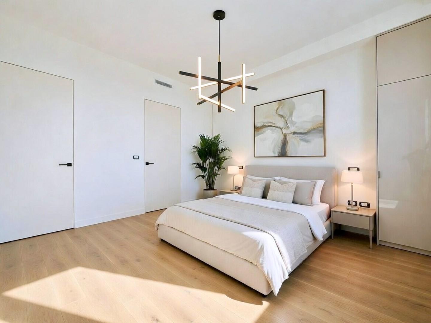 Il condominio è servito da ascensore. L'ingresso all'alloggio avviene nel disimpegno. La zona giorno si compone di soggiorno living con angolo cottura. Questo piacevole ambiente ben distribuito può esser organizzato in zona pranzo ed area relax-TV. Percorrendo il corridoio si raggiunge la zona notte. Le camere da letto sono due, entrambe matrimoniali. Gli ospiti possono fruire di due bagni.