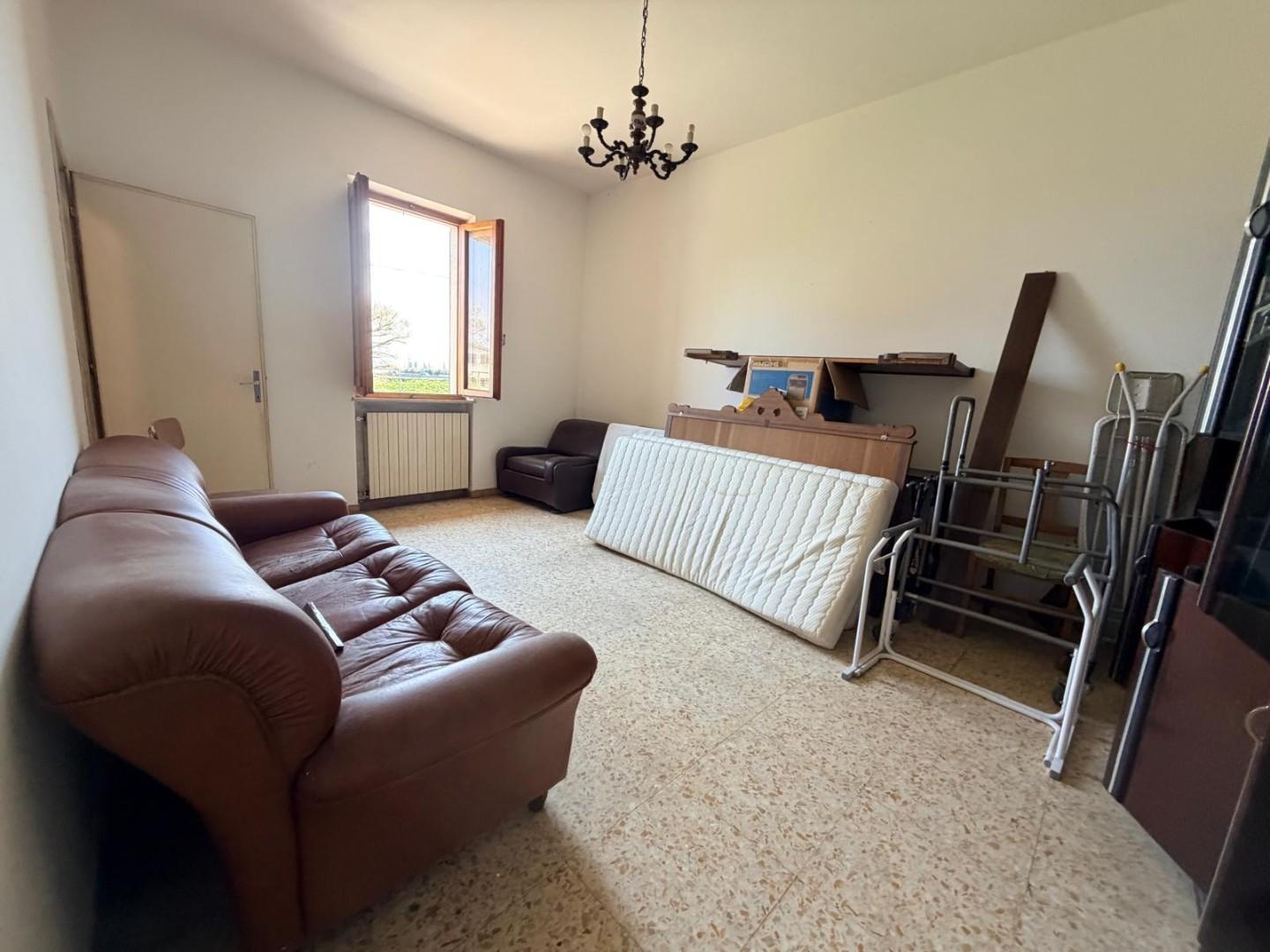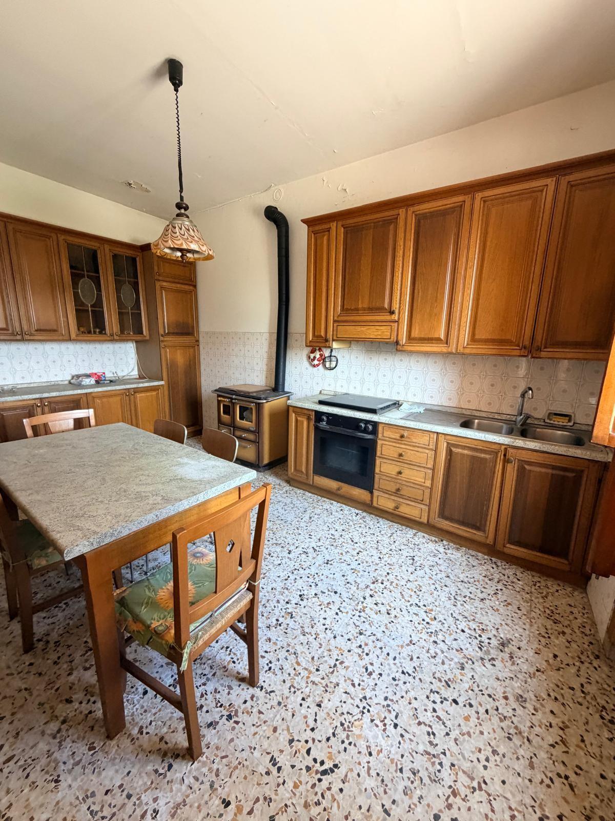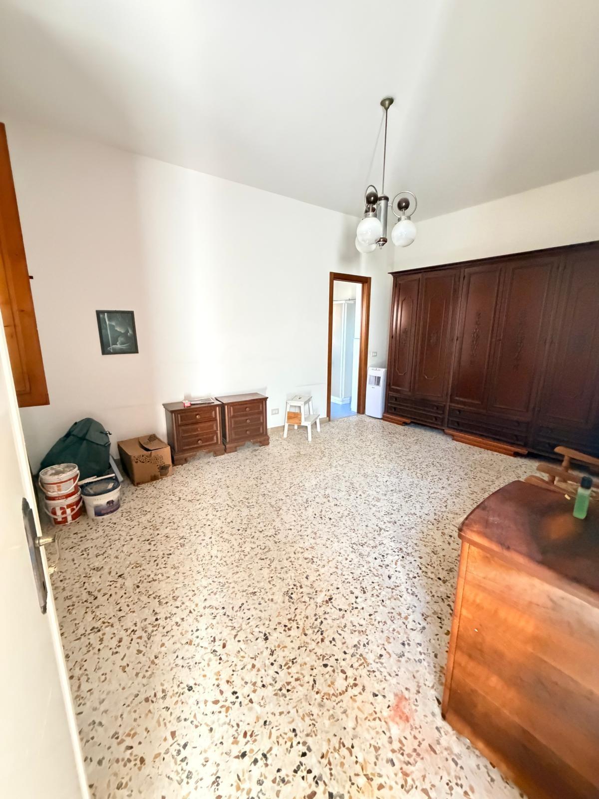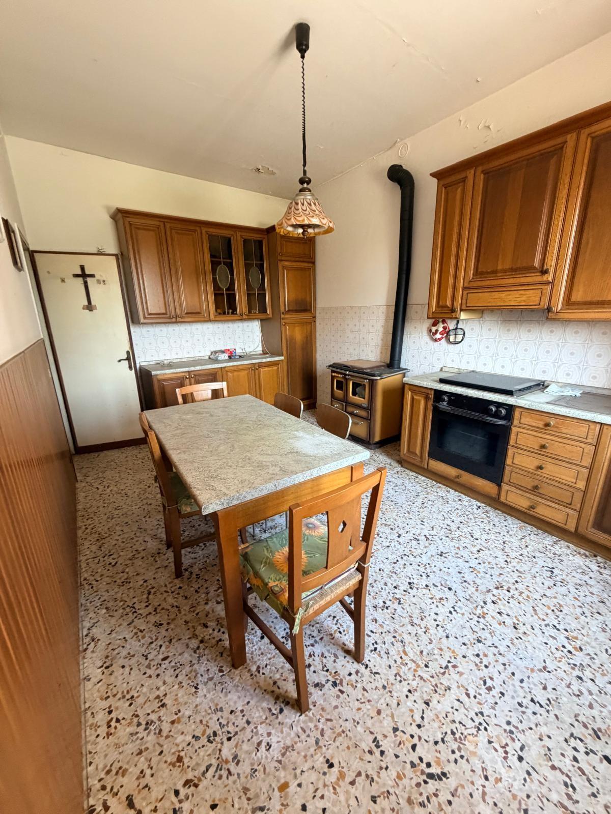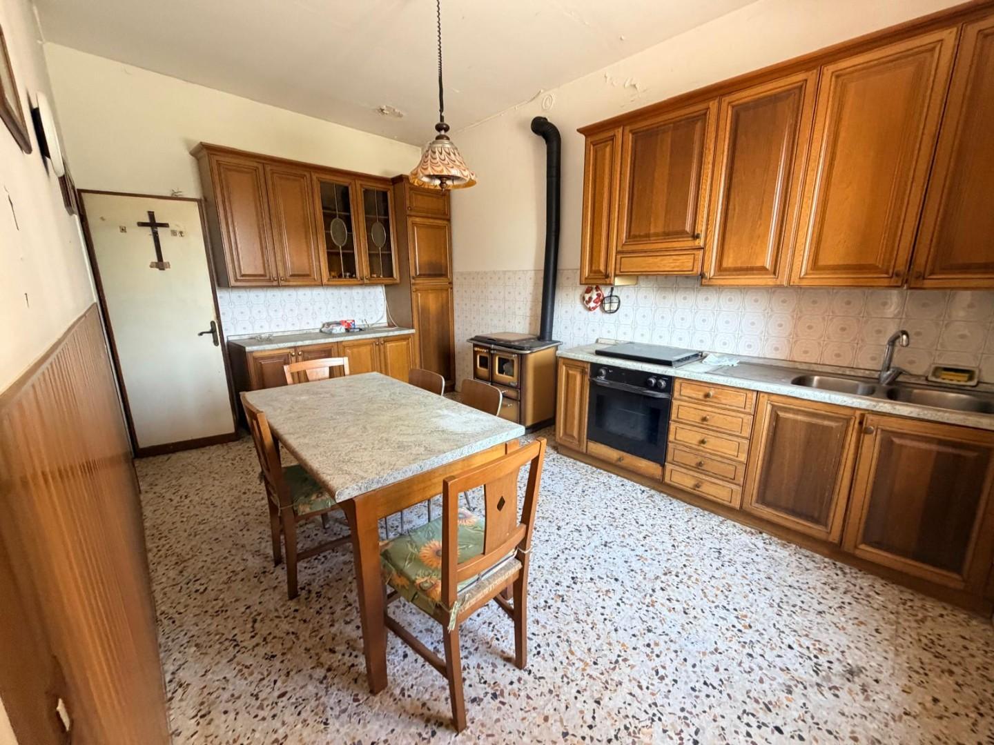 Terratetto di tipo tradizionale, disposto su due livelli, da ammodernare. Al piano terra si sviluppa la zona giorno composta da: cucina con ripostiglio, soggiorno e bagno di servizio. La scala interna, in linea con le modalità costruttive tradizionali dell'epoca, conduce al primo piano dove si trovano: una camera matrimoniale, una camera doppia, un bagno con una piccola vasca e un vano sottotetto. Gli infissi sono in legno con vetro semplice, dotati di scuroli; in parte sono presenti zanzariere. Completano le aperture persiane in legno. Pur richiedendo lavori di ammodernamento, l'immobile presenta una distribuzione funzionale degli spazi e si presta ad interventi di personalizzazione e valorizzazione.