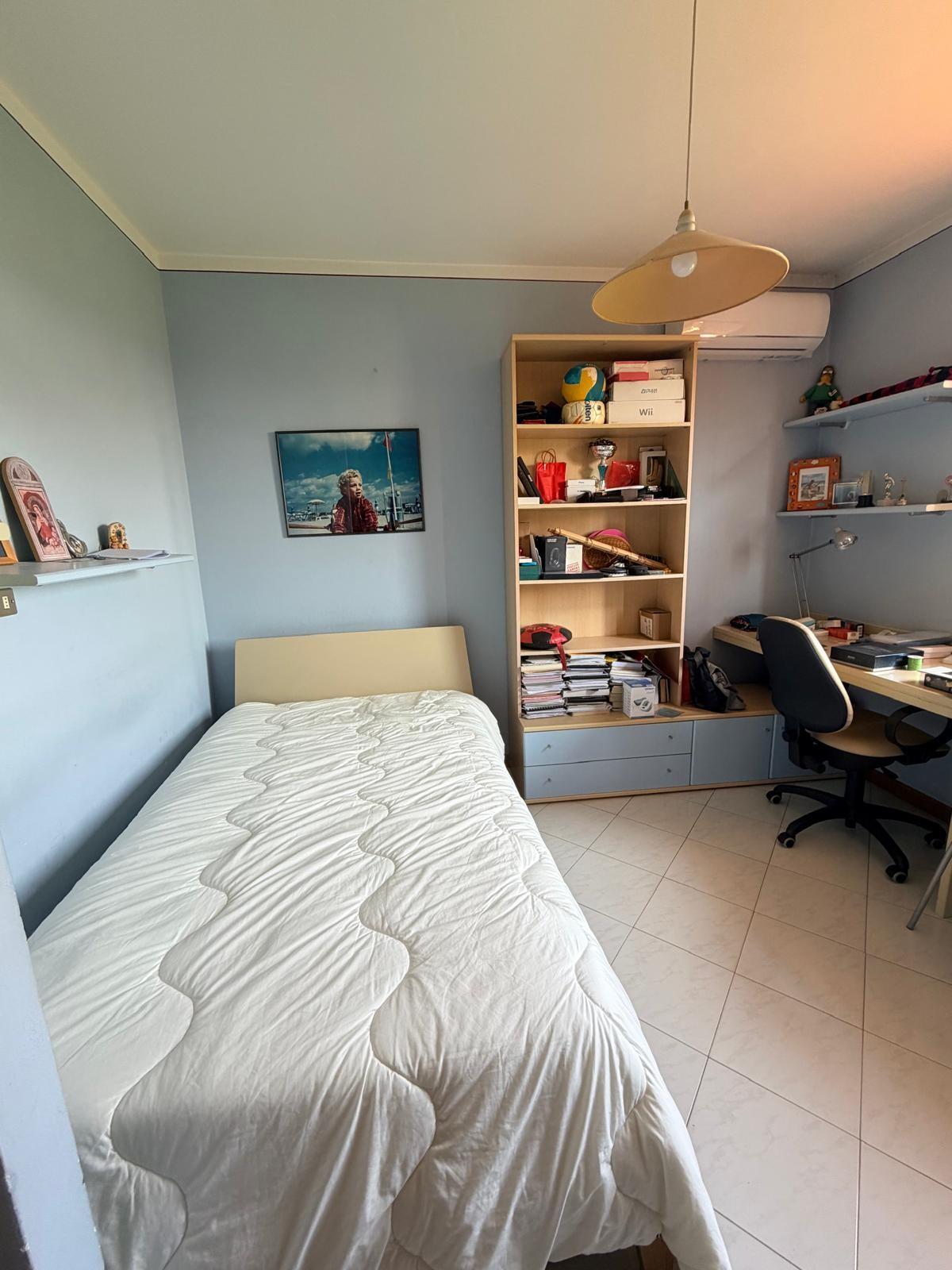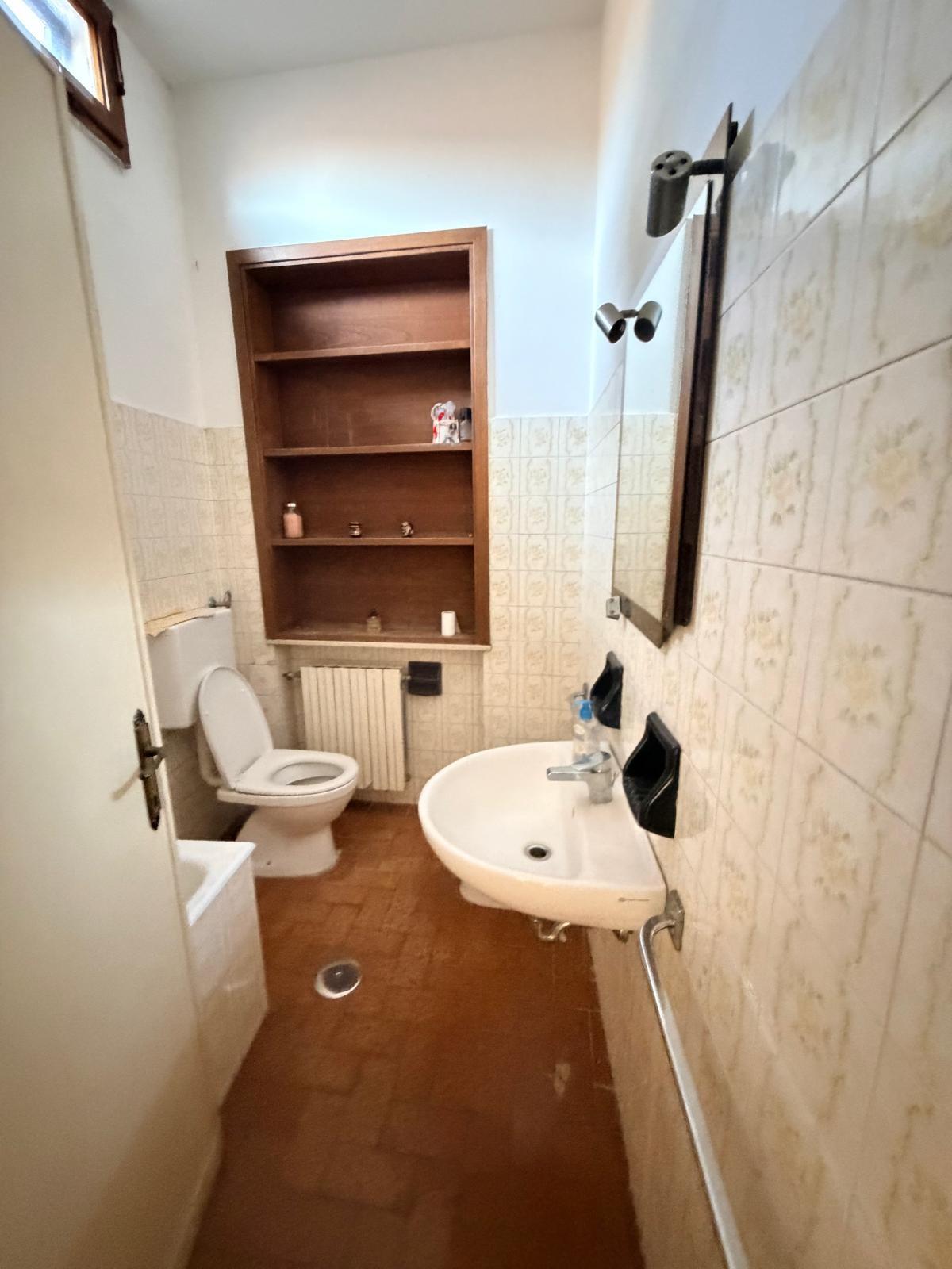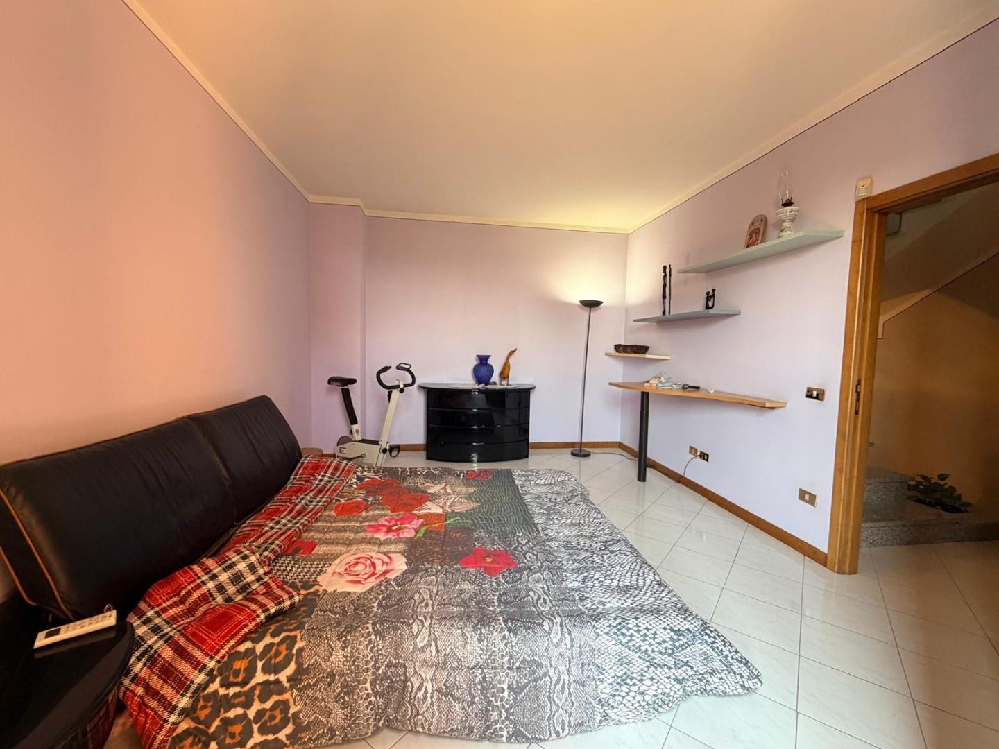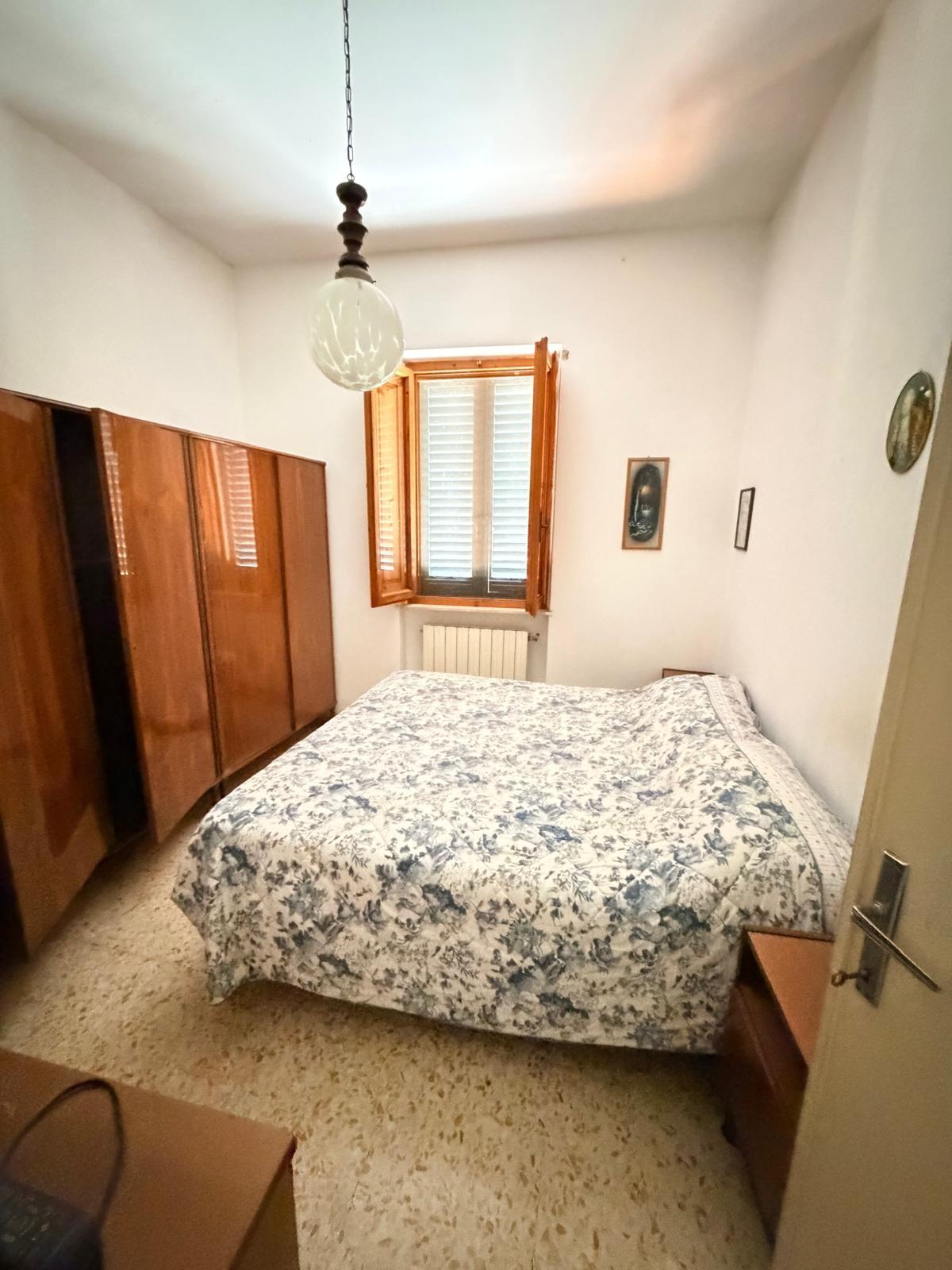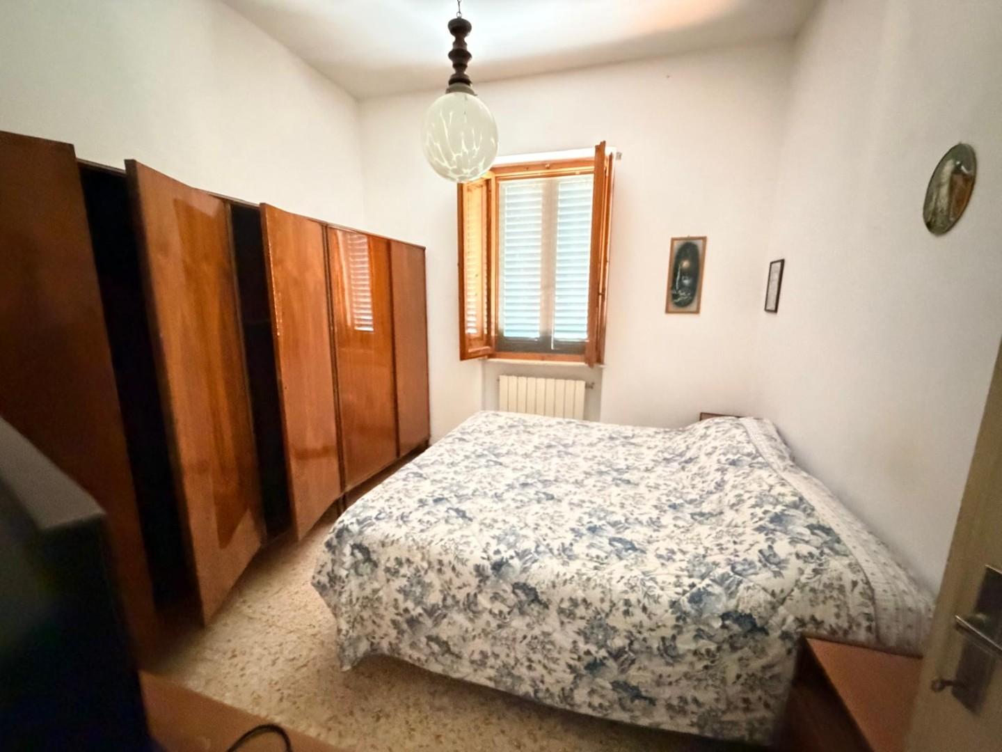 Terratetto di tipo tradizionale, disposto su due livelli, da ammodernare. Al piano terra si sviluppa la zona giorno composta da: cucina con ripostiglio, soggiorno e bagno di servizio. La scala interna, in linea con le modalità costruttive tradizionali dell'epoca, conduce al primo piano dove si trovano: una camera matrimoniale, una camera doppia, un bagno con una piccola vasca e un vano sottotetto. Gli infissi sono in legno con vetro semplice, dotati di scuroli; in parte sono presenti zanzariere. Completano le aperture persiane in legno. Pur richiedendo lavori di ammodernamento, l'immobile presenta una distribuzione funzionale degli spazi e si presta ad interventi di personalizzazione e valorizzazione.