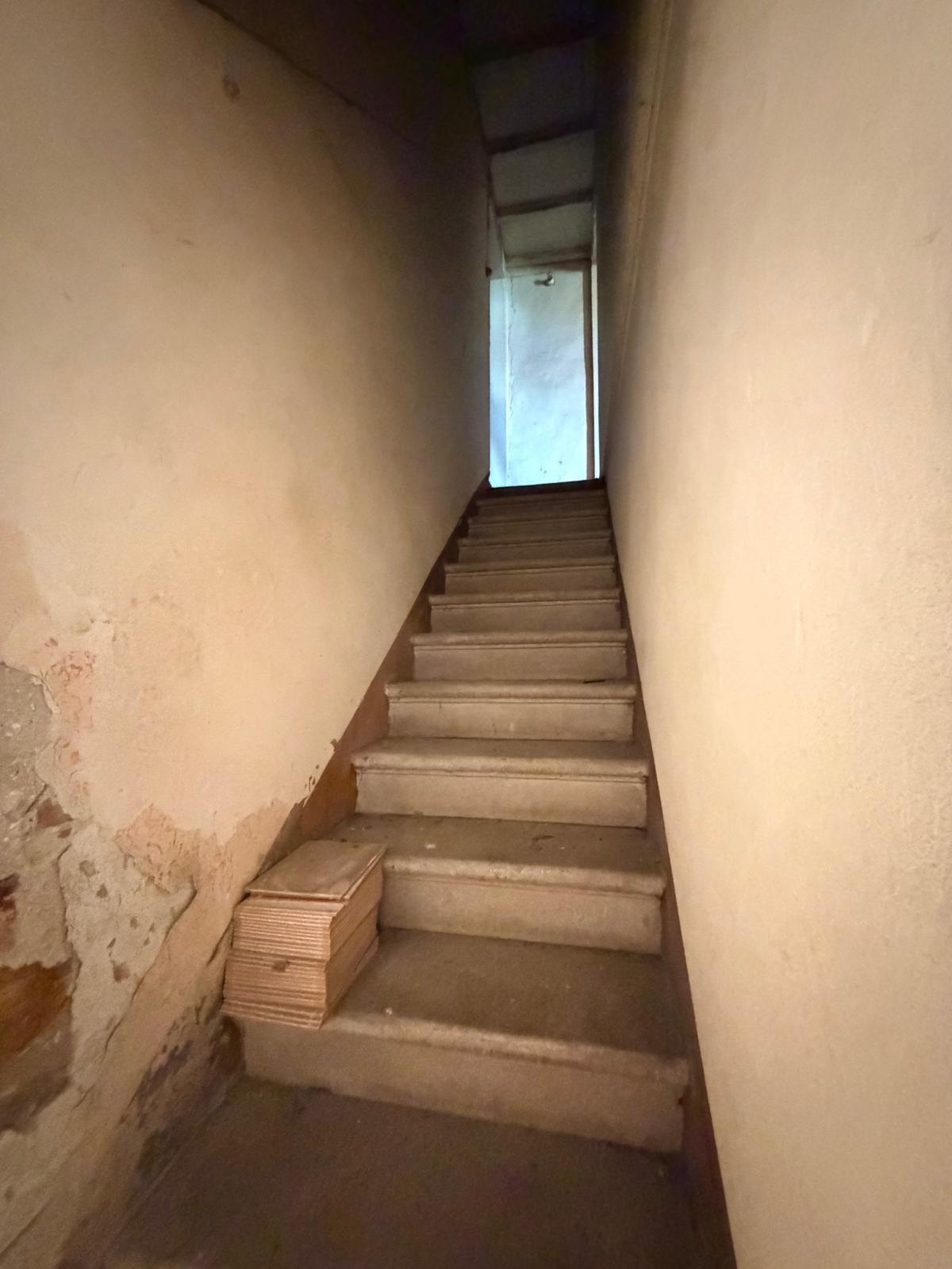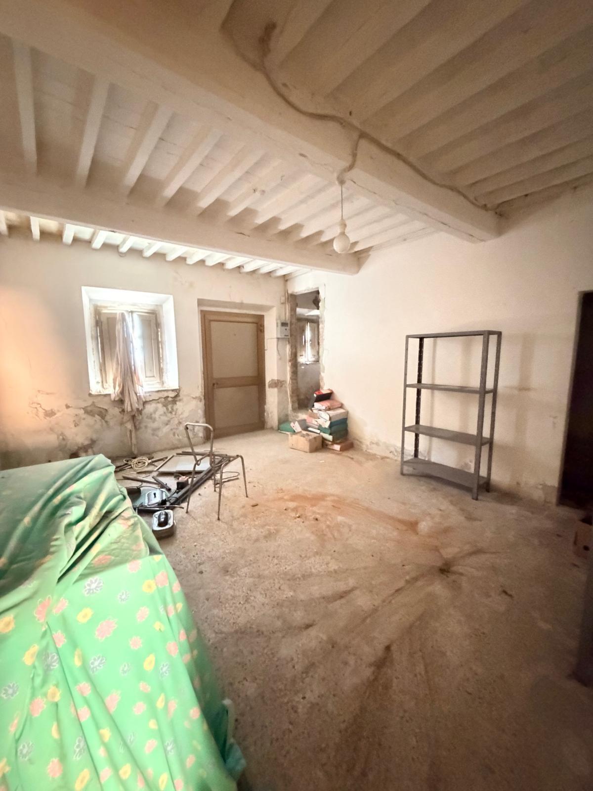 Fabbricato di circa 80 mq, originariamente adibito ad ex bottega. L'immobile presenta doppio accesso: ingresso principale fronte strada e ingresso secondario sul retro con affaccio su resede a comune con le altre unità. Al piano terra si sviluppano due ampi vani, uno dei quali dotato di camino, oltre a due scale interne che conducono al piano superiore, dove si trovano ulteriori due vani. L'intera unità si presenta completamente da ristrutturare; in alternativa, qualora non si intenda intervenire nell'immediato, può essere utilizzata come rimessa.