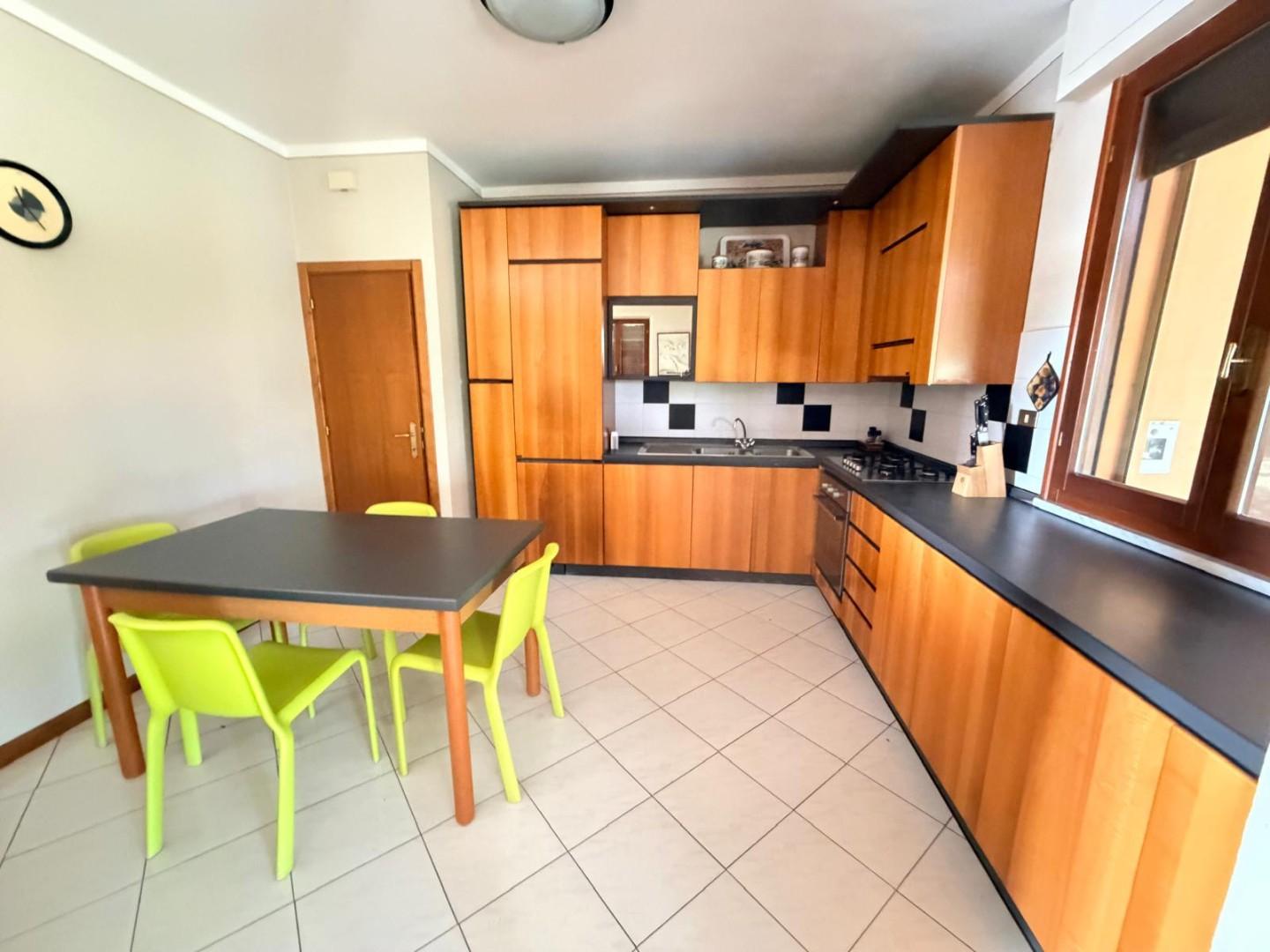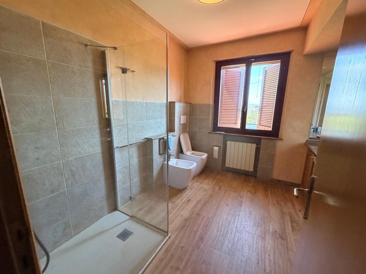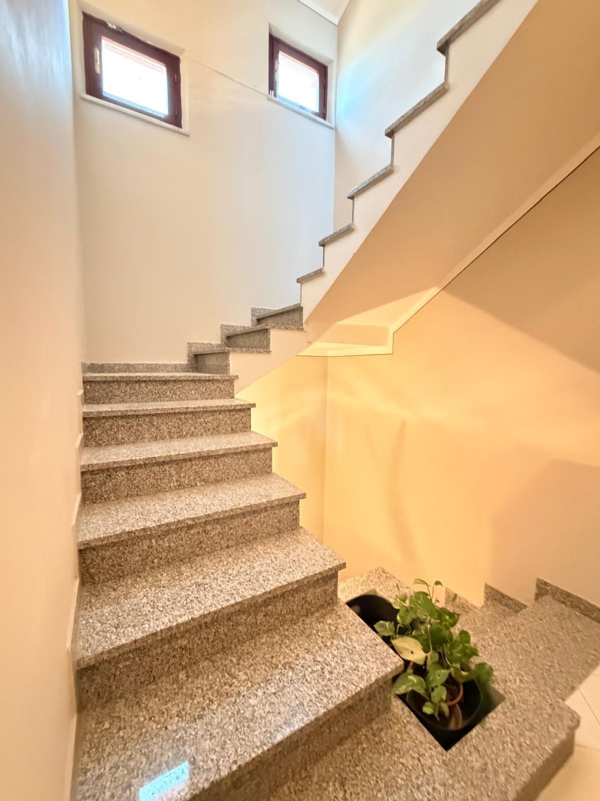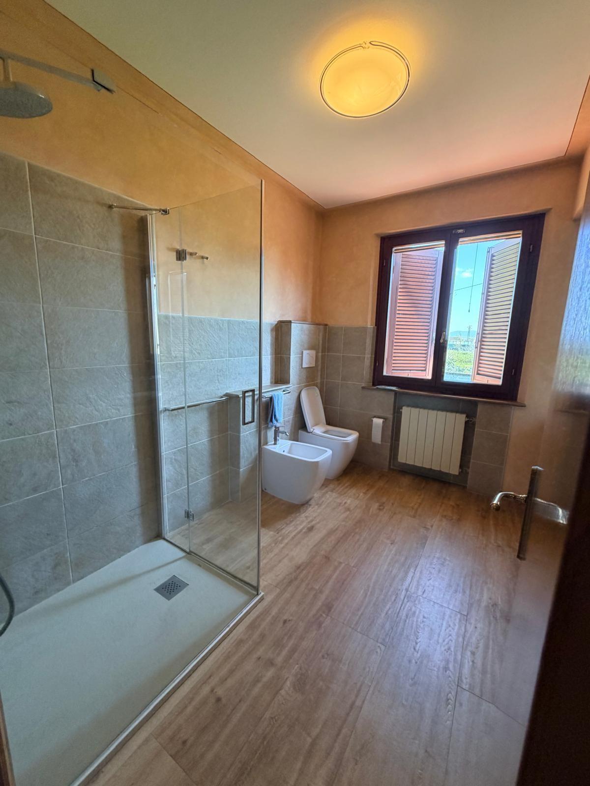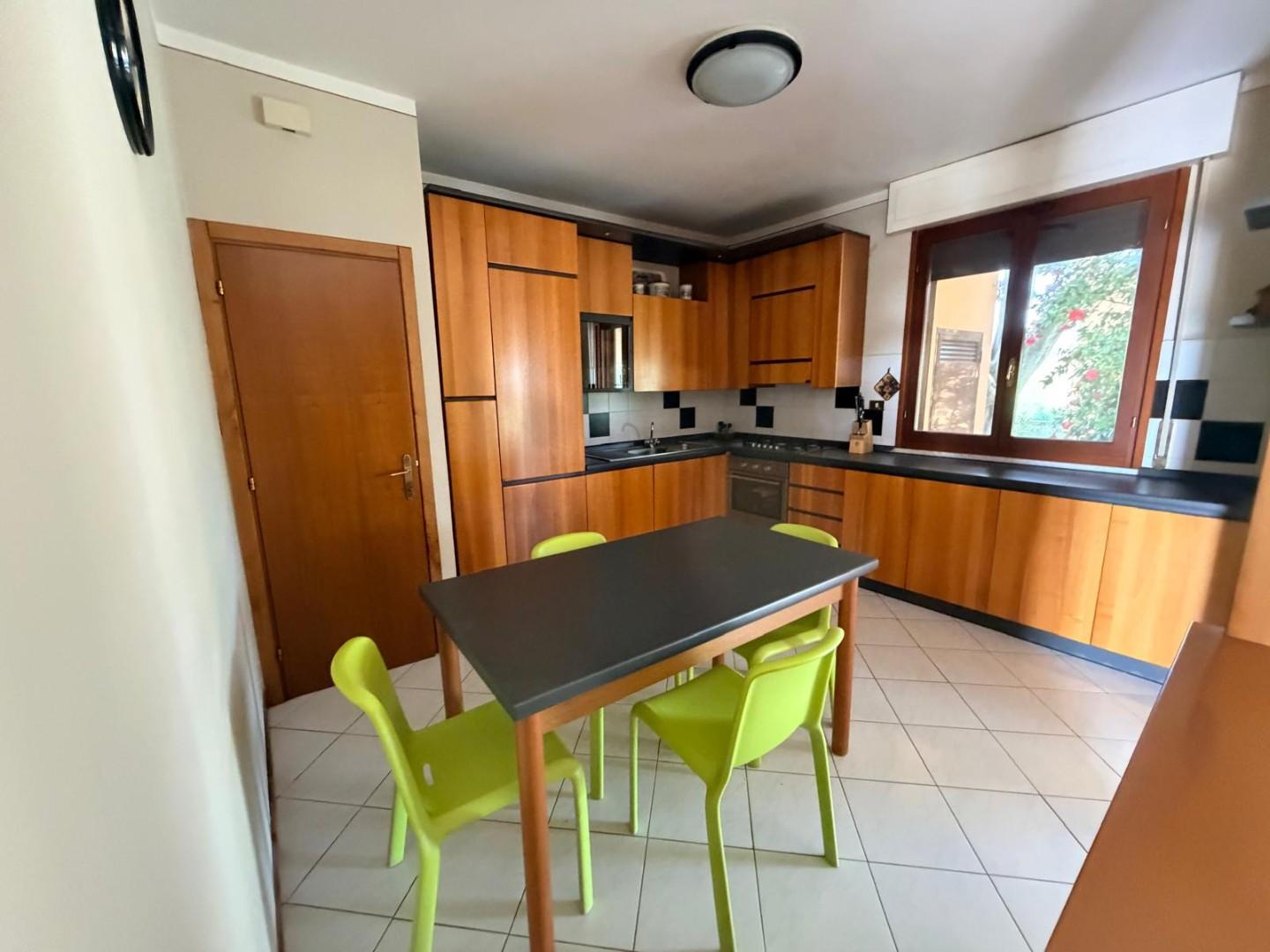 La proprietà è dotata di infissi con vetro doppio, zanzariere e persiane in legno. E' inoltre presente la porta blindata e un sistema di allarme a servizio dell'abitazione. A completamento un garage pertinenziale di circa 35 mq, composto da un unico ambiente dotato di tre accessi indipendenti tramite basculanti. L'immobile si presenta in buono stato di manutenzione, pronto per essere abitato.