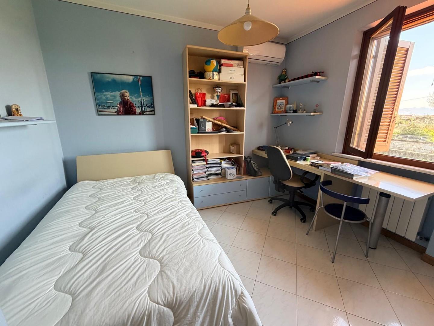 Villa di circa 180 mq disposta su due livelli, con piano secondo mansardato, libera su tre lati. La proprietà è caratterizzata da un porticato pavimentato che si sviluppa su tre lati, con affaccio diretto al giardino.
