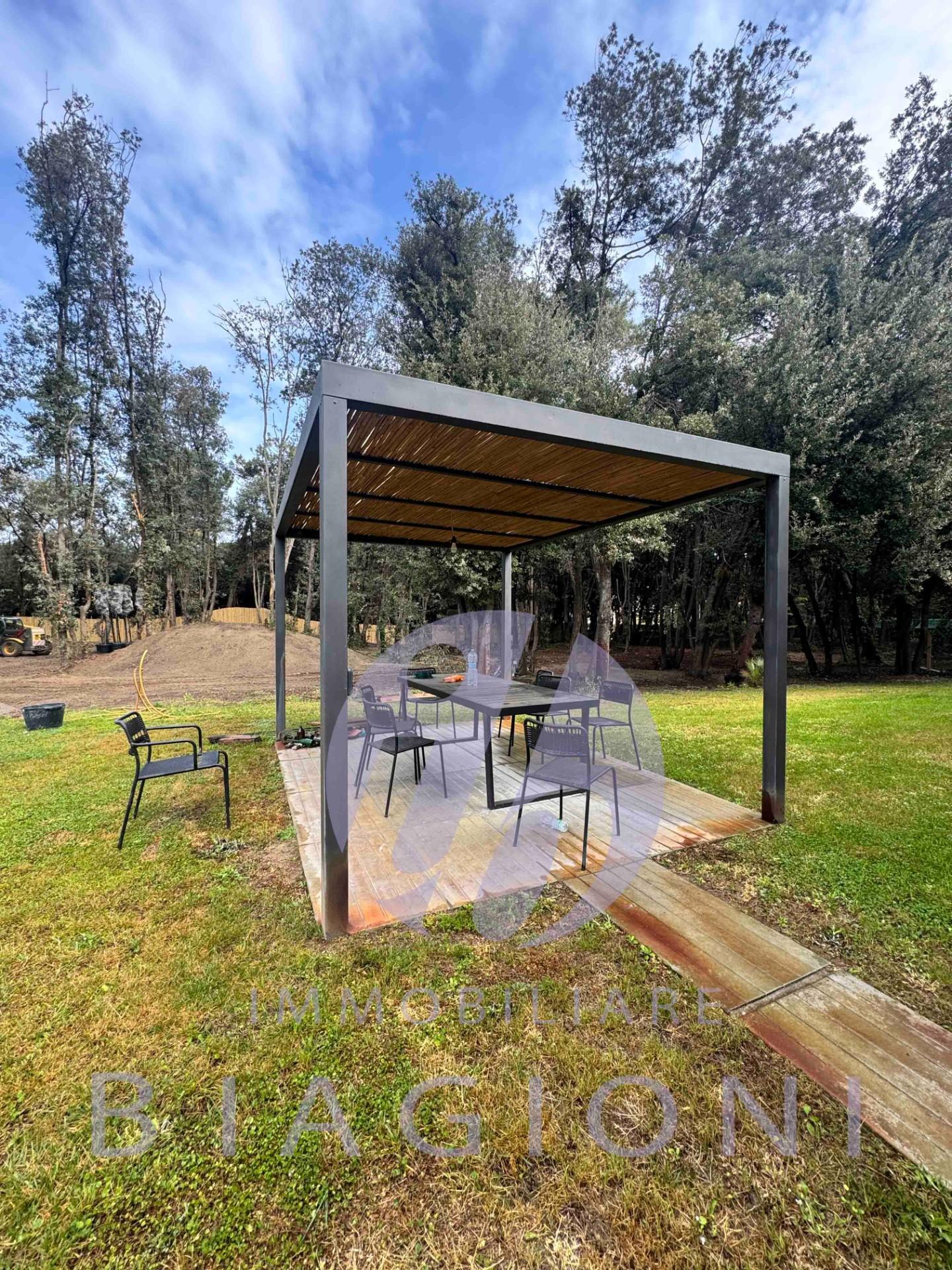 La casa ha nella sua unicità un parco di 6000 metri con dune di sabbia tipiche della macchia mediterranea possibilità di grande piscina e di ampliamenti importanti, si può arrivare fino a 220mq a piano terra pu 25 di garage o pertinenza nonchè di raddoppio della superficie facendo un grande seminterrato grande quanto la sup del PT.