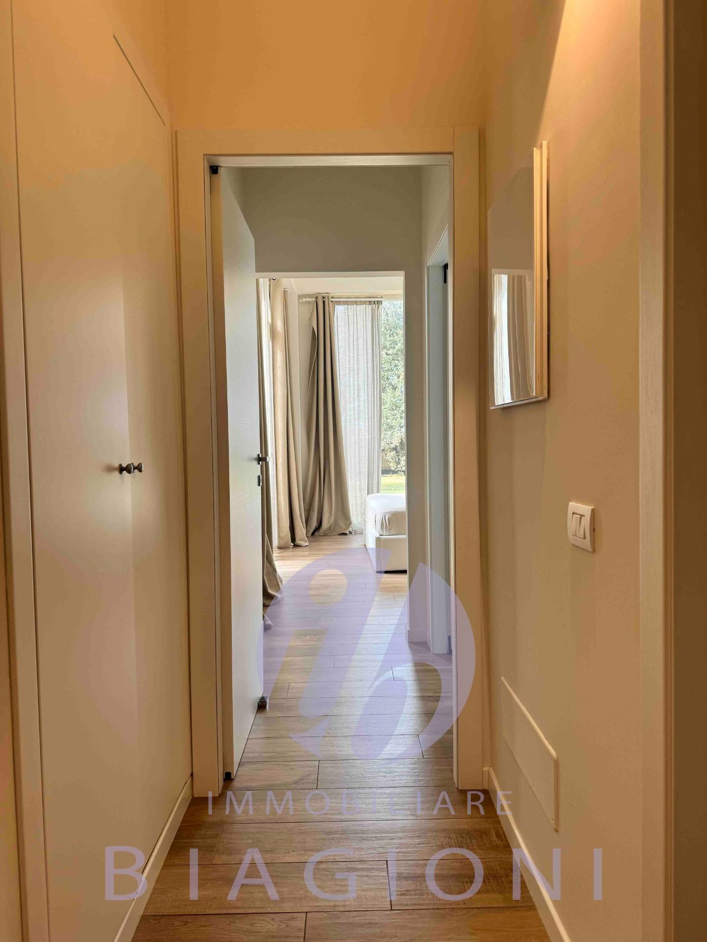 Entrando dalla parte fronte mare abbiamo, terrazza di accesso ed una luminosissima sala con doppia esposizione est ovest dotata di grandi vetrate sulla destra gran parte della zona notte con tre matrimoniali ognuna con il suo bagno mentre a sinistra abbiamo cucina, servizio e una padronale doppiamente esposta con grandi vetrate nel verde. a piano seminterrato una grande cantina ripostigio.