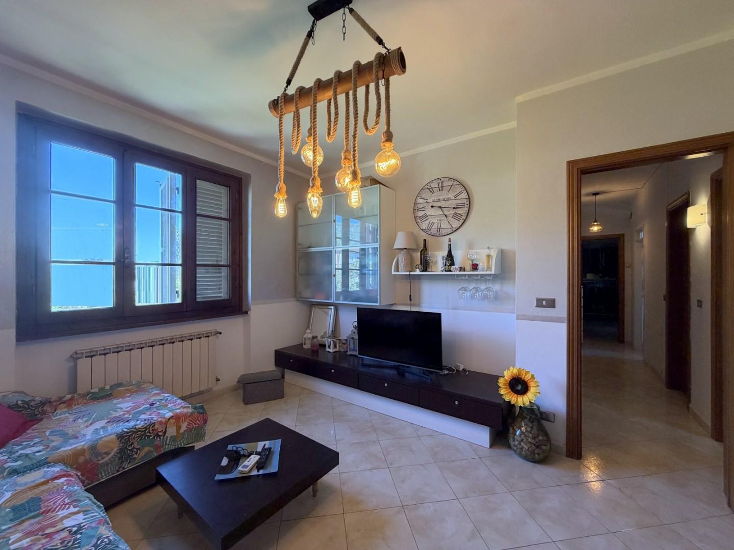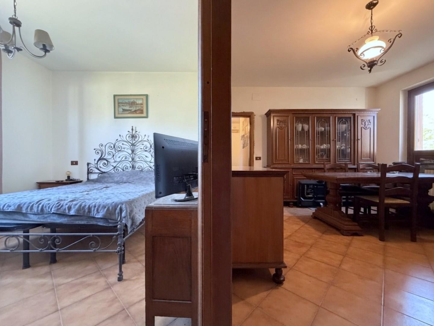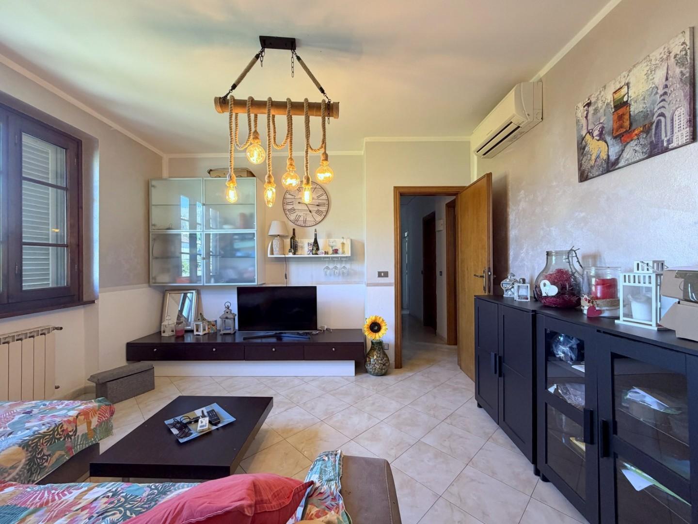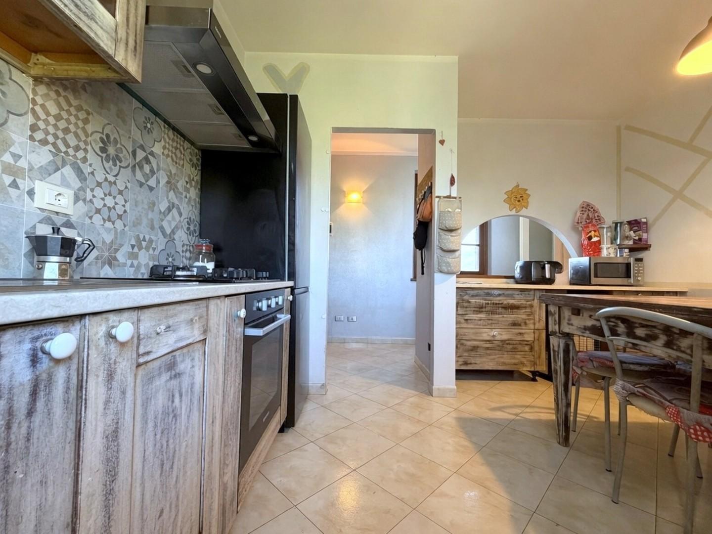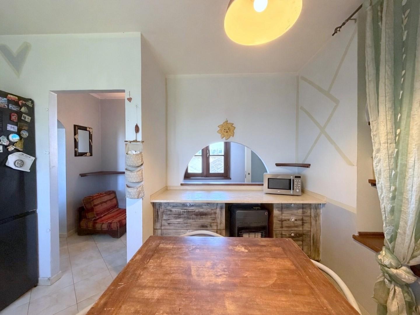 Al piano terra, l’ingresso si apre su un comodo disimpegno che distribuisce in modo funzionale gli ambienti: la zona giorno si compone di un ampio soggiorno, ben organizzato tra area relax e zona pranzo, affiancato da una cucina abitabile impreziosita dalla presenza del camino. La zona notte ospita due camere da letto. Completa questo livello un comodo bagno con doccia.