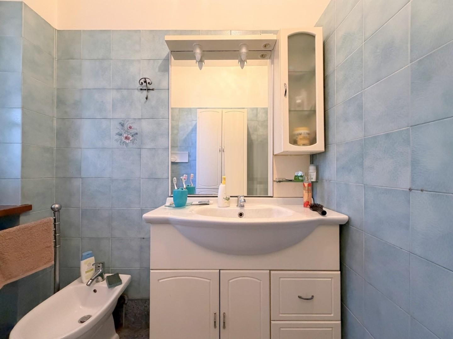 Il piano primo, accessibile sia internamente che tramite ingresso indipendente, si configura come un secondo appartamento completo: qui troviamo una cucina abitabile, un accogliente soggiorno, oltre a una zona notte composta da due camere matrimoniali e un ulteriore ambiente versatile utilizzabile come cabina armadio o studio o cameretta. A disposizione di questo piano un secondo bagno con vasca.