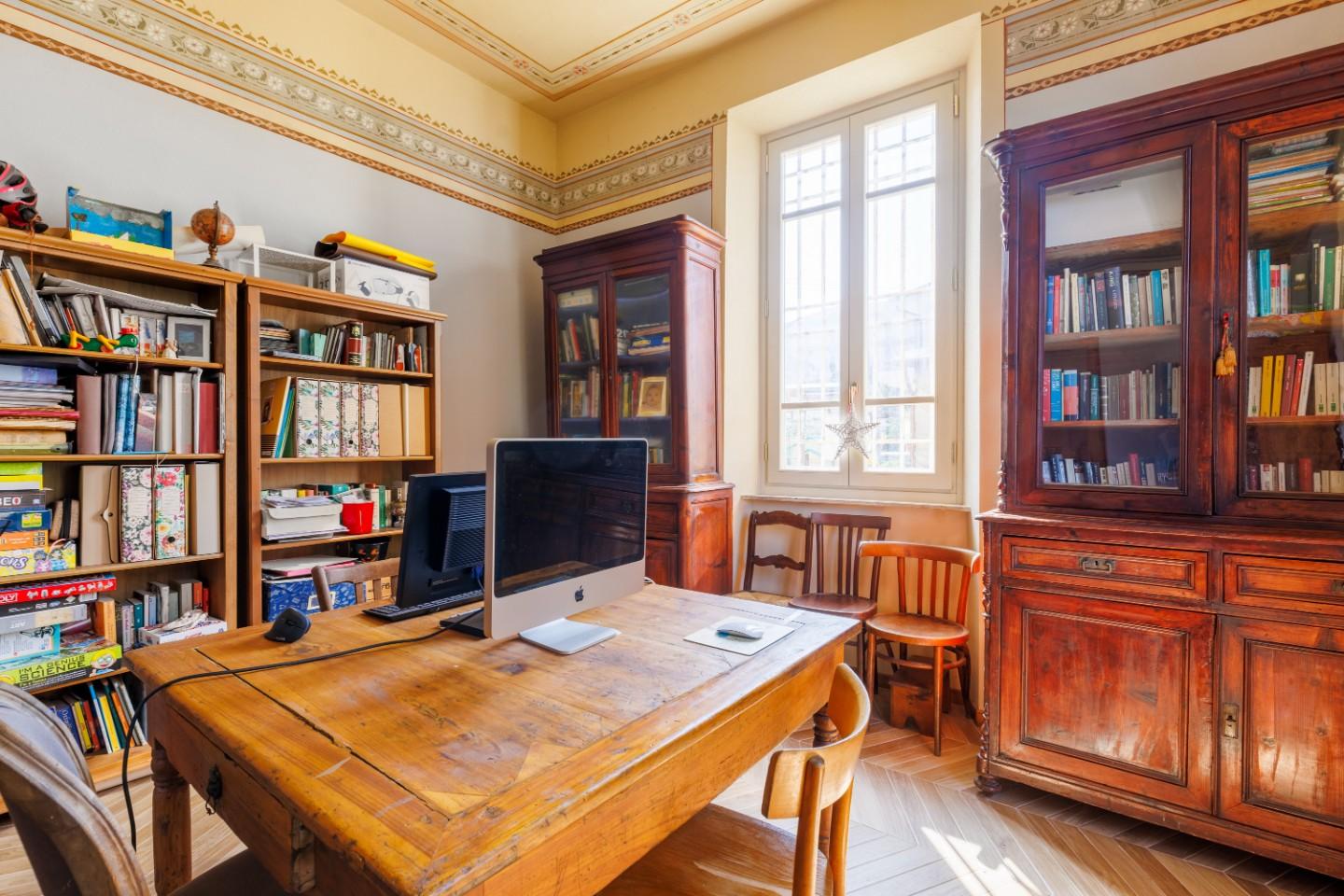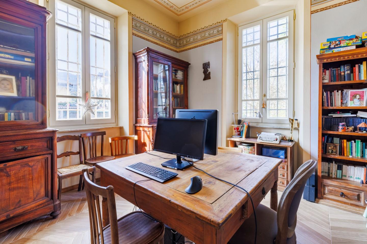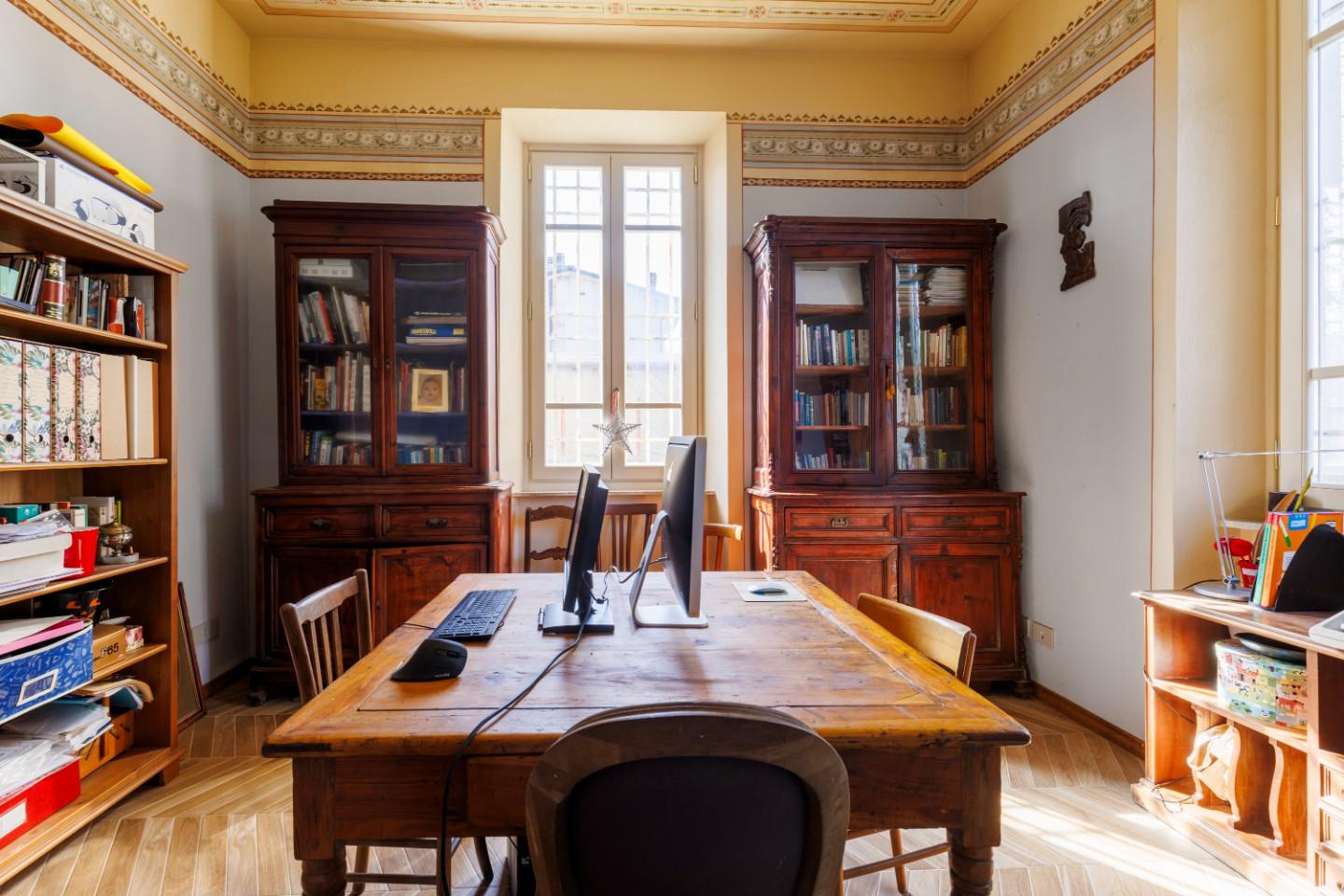 All’ingresso della villa si viene accolti da un portone d’epoca che introduce a un piano terra ampio e luminoso, dove gli ambienti scorrono in modo armonioso. La cucina abitabile, impreziosita da un caratteristico caminetto, dialoga con un soggiorno di grande metratura, anch’esso dotato di camino e affacciato direttamente sul giardino, creando uno spazio perfetto per vivere momenti conviviali e di relax. Sempre al piano terra si trova anche uno studio, ideale per chi lavora da casa o desidera uno spazio dedicato alla concentrazione. Completano il livello un bagno di servizio, una veranda e un garage ristrutturato e pavimentato, perfetto anche come ambiente jolly da adattare alle proprie necessità. Il riscaldamento a pavimento assicura comfort in ogni stagione.