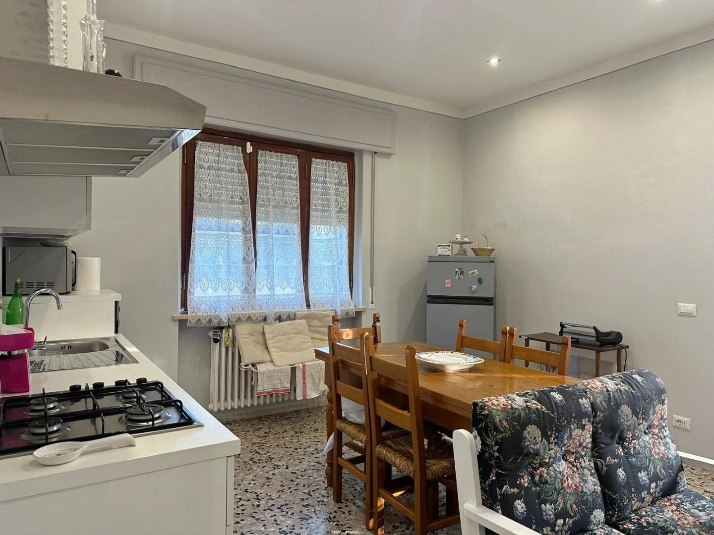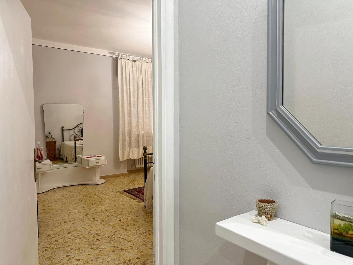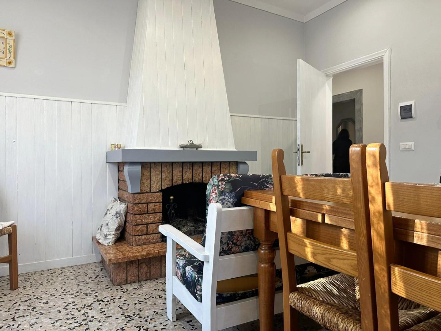 L’appartamento si distingue per l’ottima luminosità degli ambienti: dal corridoio si accede alla sala, alla cucina abitabile con caminetto e agli altri vani della casa. La zona notte è composta da tre camere da letto, di cui due matrimoniali e una singola, oltre a un bagno finestrato con doccia.